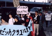 日本や中国などが2バイト系文字、いわゆる全角文字を使う事は世界のコンピュータネットワーク上の障害になっているとして、自主的に半角文字だけを使うべきだという主張を持つ政治結社「ANK(Alpha-Numeric Kana)」が今日昼過ぎ広島市内をデモ行進し、その主張を繰り返し通行人にアピールした。