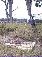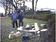 さぁ、こうして葵の紋所を入手してしまえば、怖いものはない。こうなると良くしたもので、幼稚園の子供友達経由の妻の友達で植木屋さんがいて、なんとエンジン式のチェーンソーまで借りれる事になったのである。正に鬼に金棒に原子爆弾状態である。こうしてすぐに第5次エノキカッパギツアーが告知され、土曜が雨だったので11/30に都合のついた懐かしのT隊員(現在ではタカさん)及び、先週に続いての登場となったK.Suzuki氏を引き連れ、徹底的なカッパギが行われた。1時集合だったが、K.Suzuki氏はやや遅れ、なんだかんだで現地でカッパギを開始したのは2時頃になってしまった。