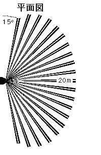 パッシィブ赤外線トレイルモニタートレイルマスター TM550、TM300TM550は動物が出す赤外線を検知する方式のモニターです。モニター範囲内での熱と動きの組み合わせによって検知します。検知する範囲は、モニターから外側に向かって四方に広がるくさび形を形成します。このくさび形は20mの奥行きで150度の幅に広がります。暖かい血を持った動物がこのくさび形の範囲内で動くと、イベントとして登録します。動物がこの範囲で動いている限り、設定可能な時間当たり一つのイベントとしてデータを記録します。 このイベント回数を見ることによって、動物がその範囲にどのくらい長く居たかを知ることができます。