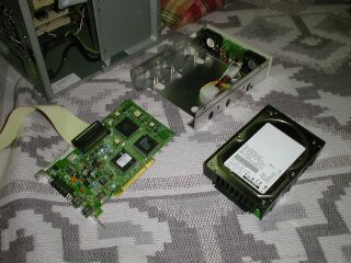 Figure 2. SCSI カードと 5インチベイへのマウンタ、それにハードディスク