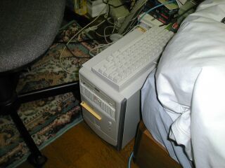 で、現在このマシンは、私のベッドの横に置かれている。ベッドに寝ころんだまんま、ネットサーフィンその他ができる。LAN をどうしようか少し悩んだが、結局私の部屋にコードを引っ張ってきて解決した。無線LAN は私の部屋に関しては必要ないということが分かった。