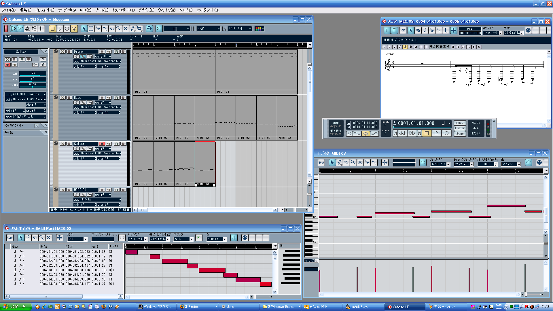 とりあえずこのCubase LEでこれまでどおりMIDIの曲を打ち込んでみた。そのときのスクリーンショットを友人にメールで送ったときの画像ファイルが残っていたので示す。