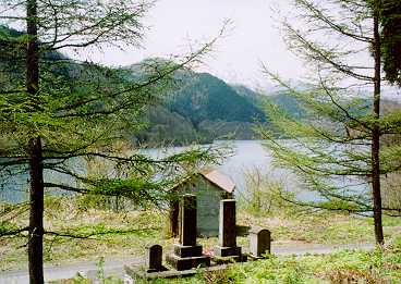 ダムサイトの少し下流にはなぜか廃トイレがあり,思わずバイクを止めて探検してしまいました。さらに下って,昨日見つけたお地蔵さんにVサインを出して本戸は通過。さらに黒当戸,中島を通過して,昨日は日暮れで通過した吉田さん出身の上笹又(Kami-Sasamata)の離村記念碑「ふるさとの碑」にたどり着きました。少し下った下笹又にも離村記念碑「萬霊之碑」があり,今日は離村記念碑めぐりです。