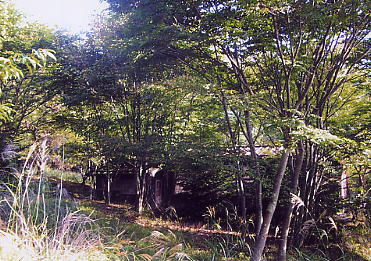 keikoとふたりで細い地道を上がって行くと,あやしい丸木橋の先の茂みに隠れるように建つ分校を見つけることができました。