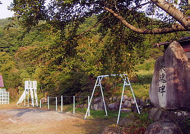 広く感じられるグランドの隅には鉄棒,ブランコに並んで「農魂碑」,「柳平開拓の唄」という石碑が立っていました。碑文を要約すると,柳平は満州からの引揚者によって昭和21年に開拓され,一時は12戸の暮らしがあったが,幾多の試練の末 4戸が定着したとのこと。
