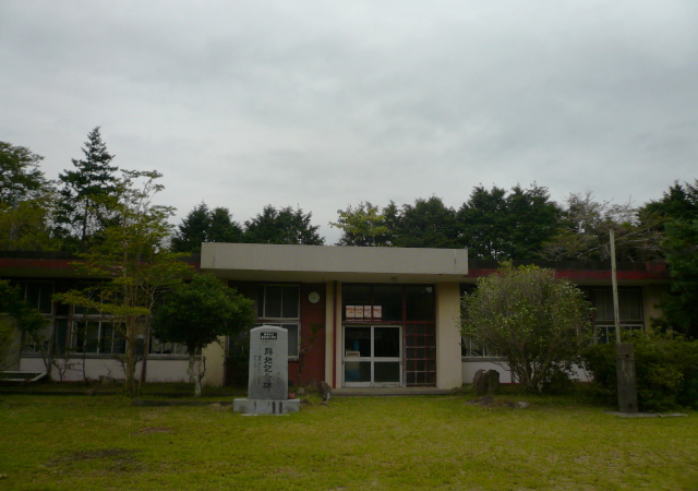 香木原小学校はへき地等級3級,児童数58名(S.34),昭和63年閉校。平屋鉄筋RC造りの校舎前には,「跡地記念碑」と記された石碑が建っていました。