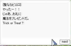 ピエロのところで、Treatを選ぶと、アイテムがもらえるらしいですね。
